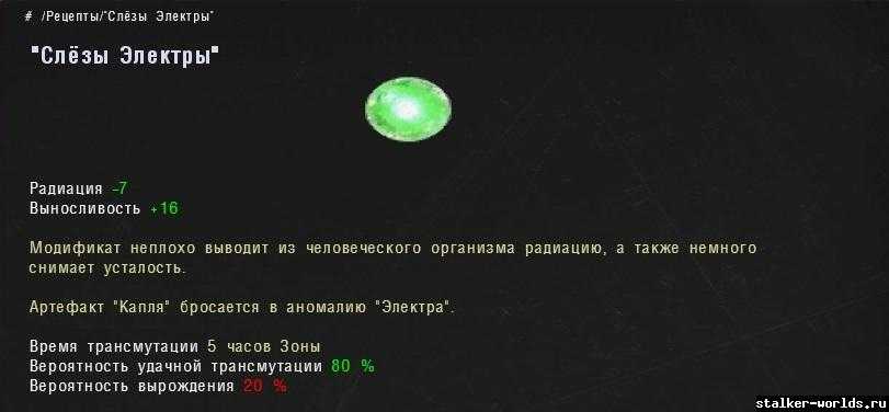 Слизь Получение рецепта 1: от Крота за ПДА Получение рецепта 2: от Беса за костюм Стрелка