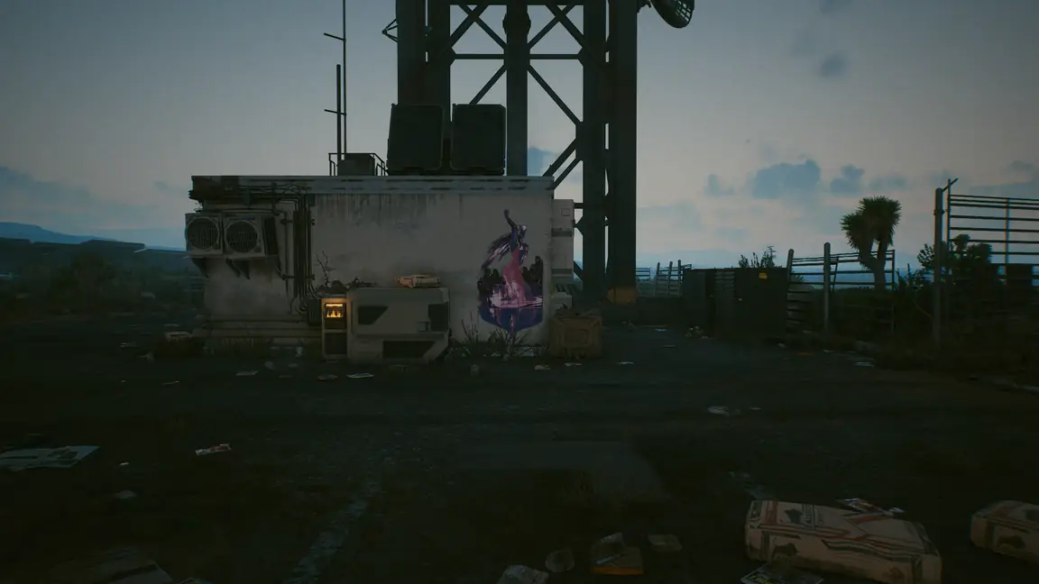 Как и Cyberpsycho выше, этот также находится недалеко от точки быстрого перемещения в центре города. Направляйтесь на север от точки путешествия, затем поверните направо, когда вы выедете на главную дорогу. Продолжайте следовать по этой дороге, пока не заметите на тротуаре перед собой два фиолетовых автомата по продаже напитков «Вкус любви» — они более невинны, чем вы думаете — и сверните на перекресток налево, но не продолжайте движение далеко. сторону другой полосы движения.