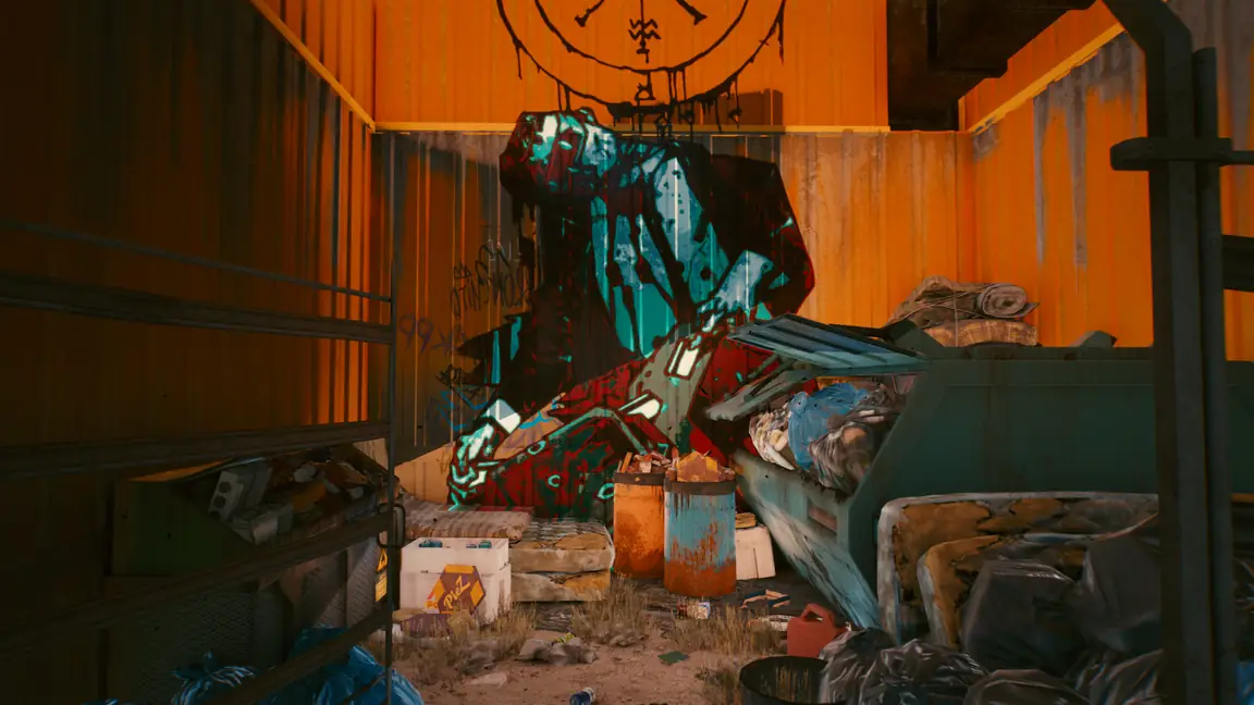 Еще одна скрытая жемчужина известна как «секретная комната разработчиков». Эта скрытая область отдает дань уважения многим членам команды, которые работали над созданием «Cyberpunk 2077». Screen Rant подробно описывает, как найти это очаровательное пасхальное яйцо. «Чтобы найти секретную комнату разработчиков CD Projekt Red в игре «Cyberpunk 2077″, игрокам следует отправиться на северную сторону рынка Кабуки. … ans должны искать магазин под названием Prefab City, рядом с которым находится лестница, ведущая вниз». На боковой улице внизу есть гараж, в который можно попасть только с кодом 605186.