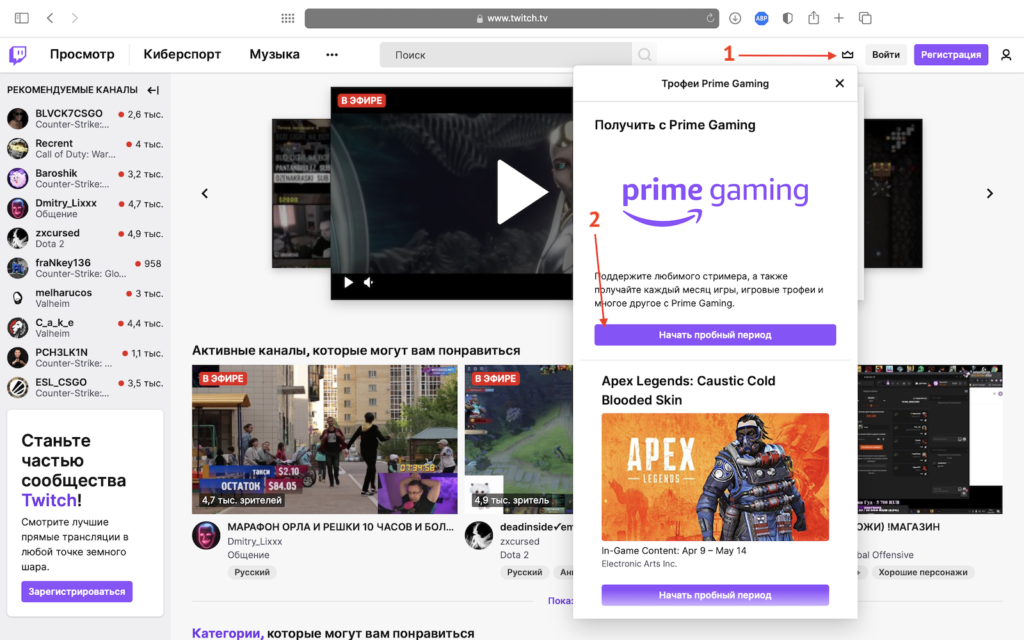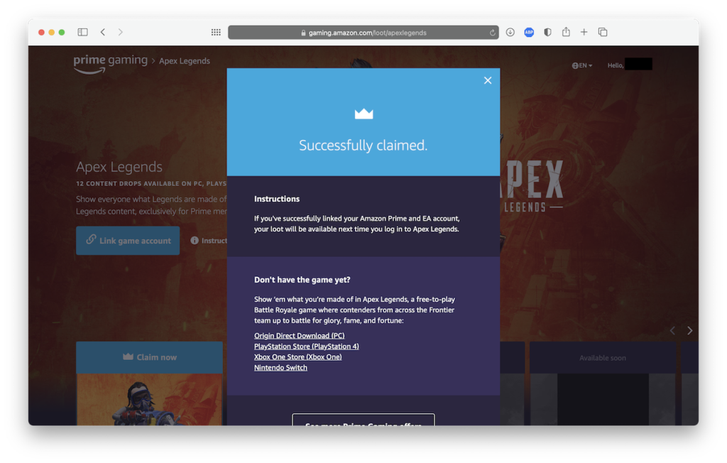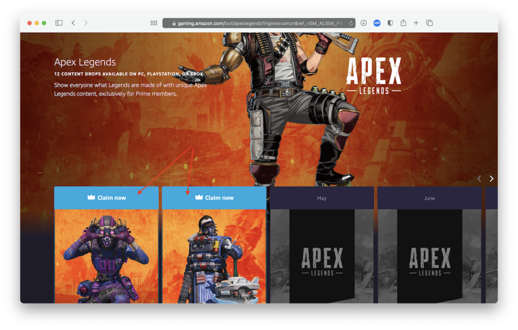 Переходим https://gaming.amazon.com/loot/apexlegends.