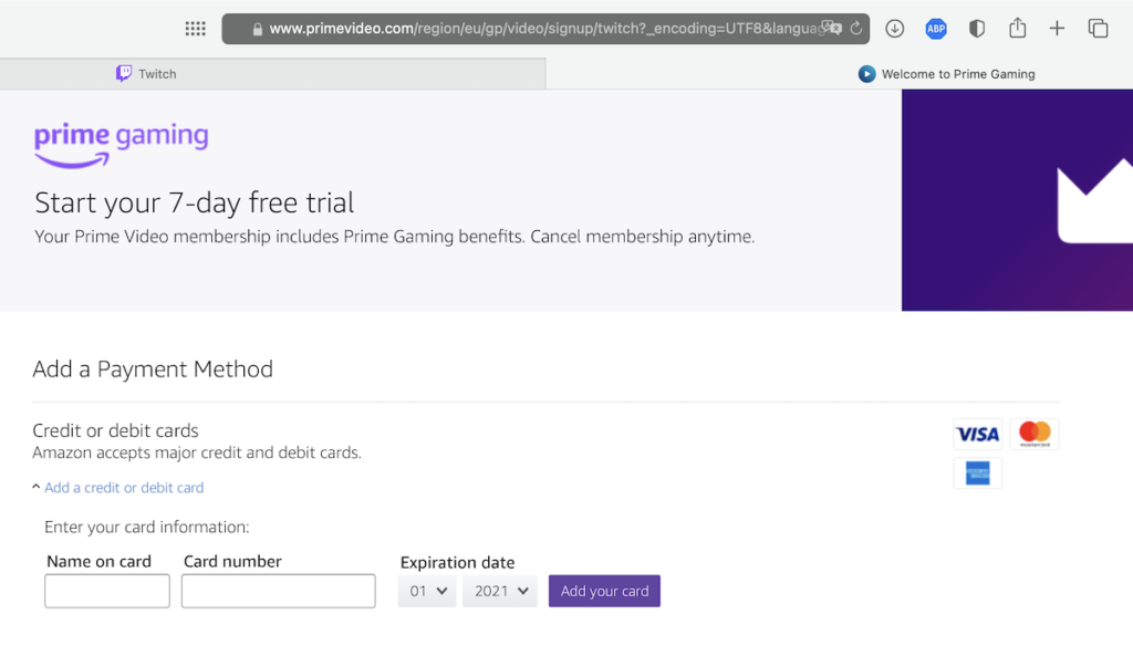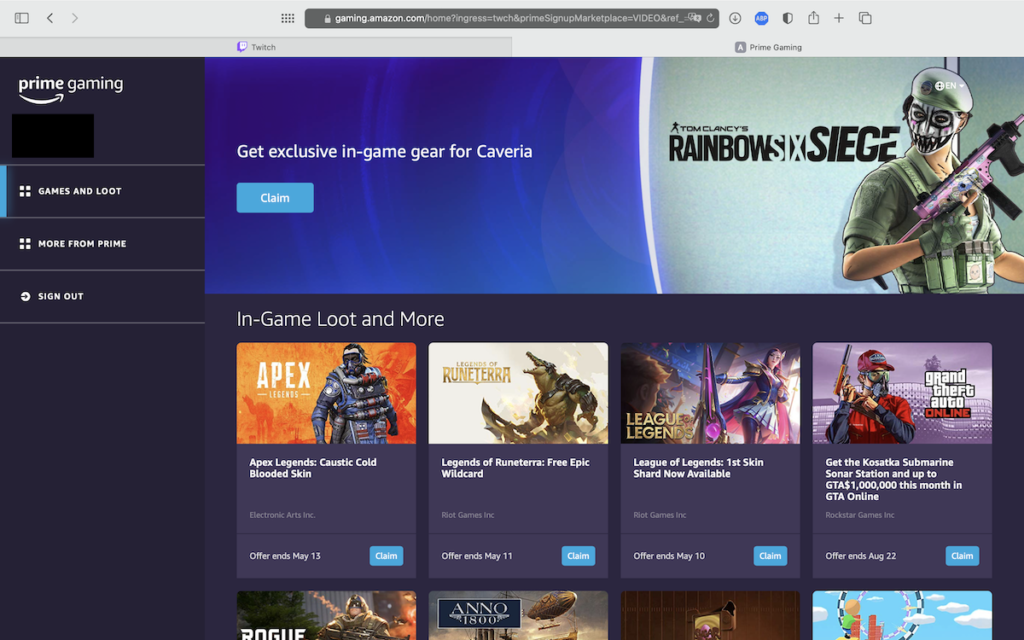 Нас перебрасывает на сайт подписки Prime Gaming от Amazon.