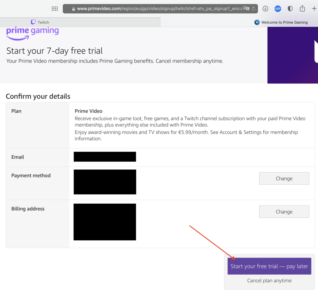 Проверяем и нажимаем «Start your free trial — pay later«.