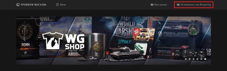 Перейдите на сайт Премиум магазина (https://ru.wargaming.net/shop/) и кликните по кнопке «Активировать код Wargaming»