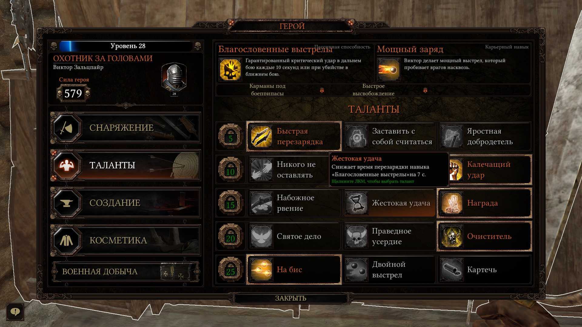 Охотник на ведьм располагает к быстрому геймплею: он энергично орудует рапирой, стрейфится, ловко уходит от удара, а его парные пистоли сравнимы по скорострельности со скейвенским пулеметом.