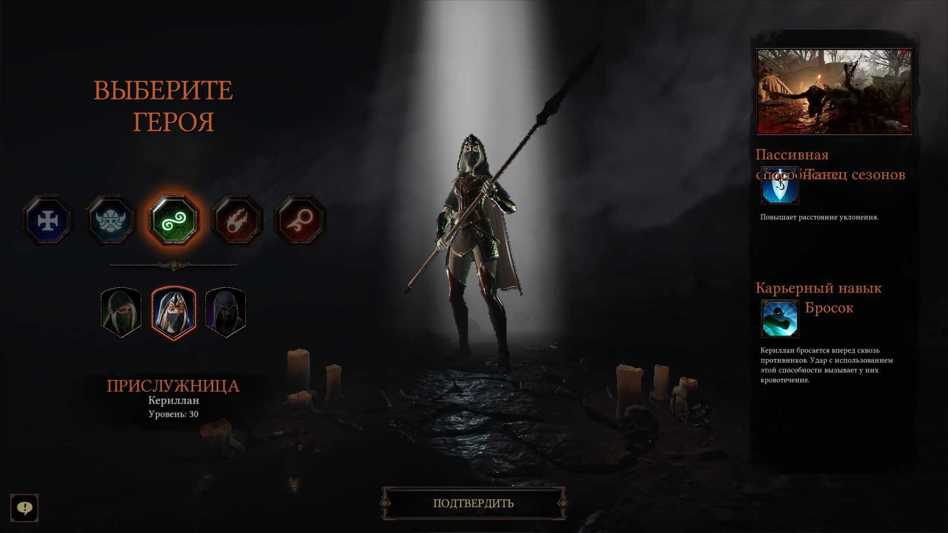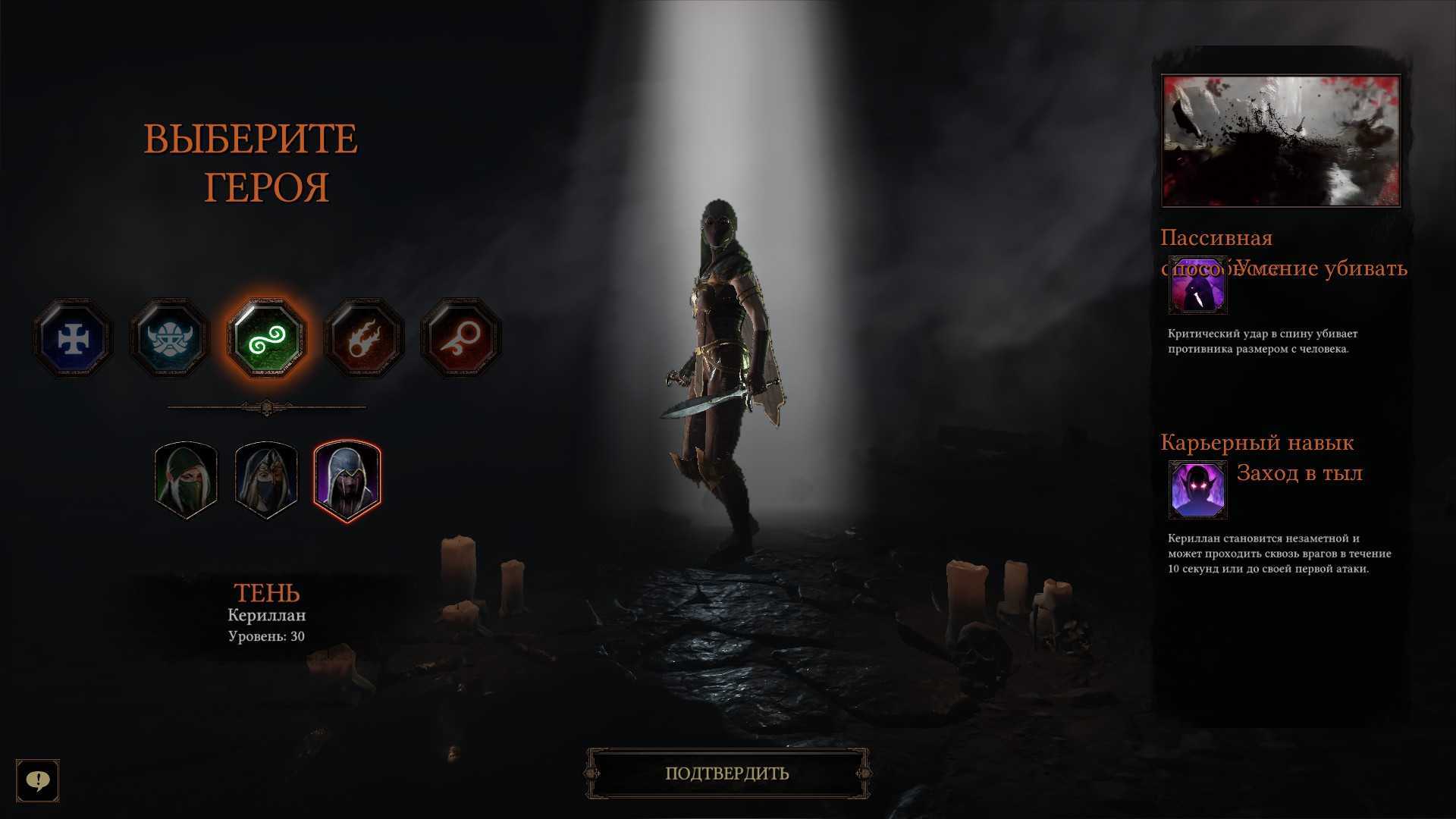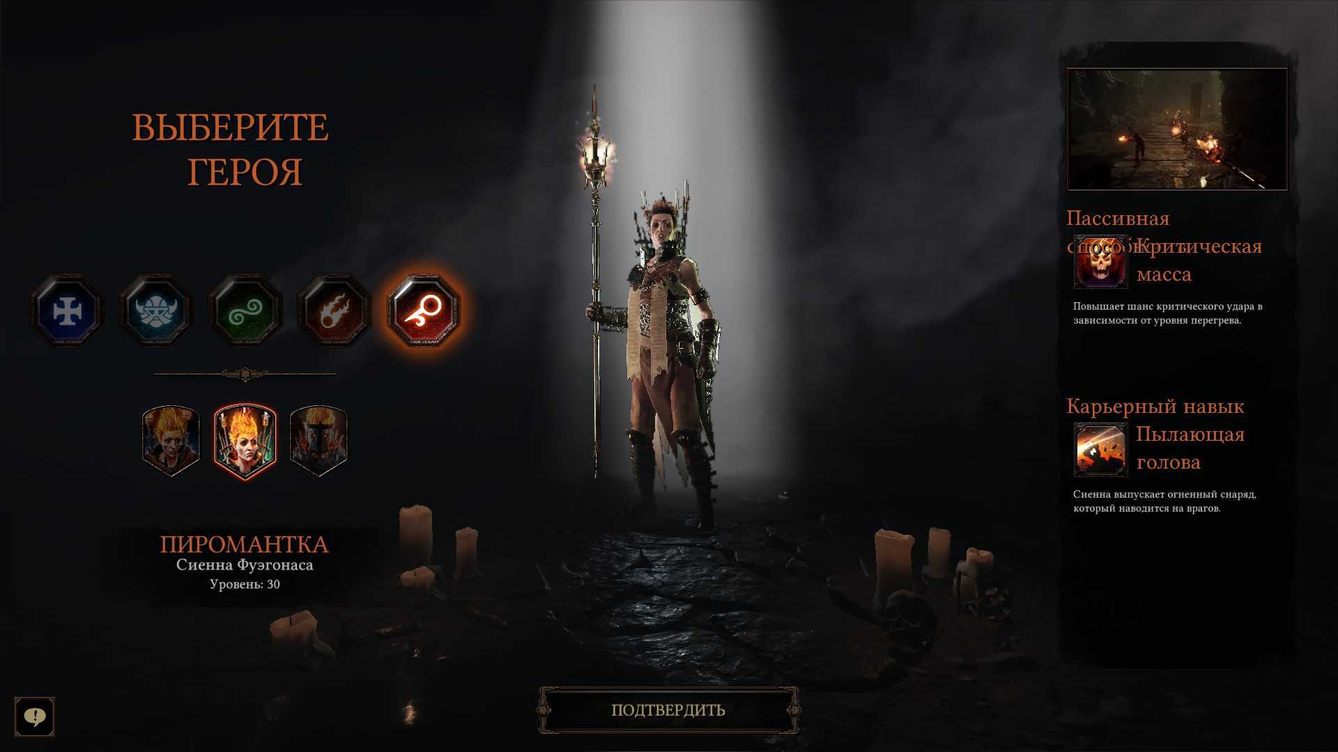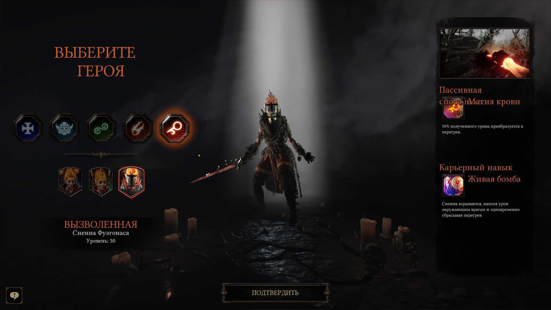Фанатик – третий класс инквизитора. Задумка у класса понятна – чем меньше хп, тем больше кпд персонажа. Только вот охотник за головами прекрасно справляется с такими же задачами и без потери внушительной части здоровья. Откровенно считаю идею хорошей, но фактически получилось не так здорово, как оно выглядит на бумажке. Играбельный, но предыдущие два класса всё таки могут зайти для команды лучше.