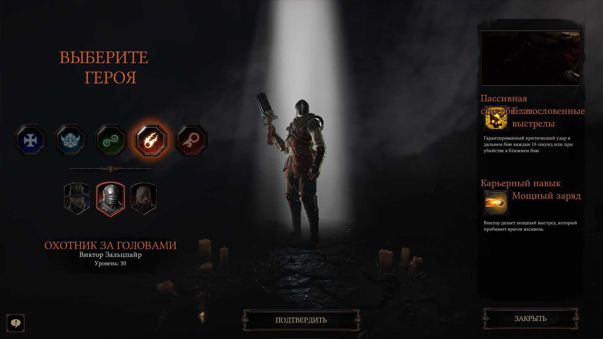 Отдельно про классы хотелось бы сказать еще кое что. Заметил как-то одну интересную особенность: если брать солдата, инквизитора, гнома и эльфа, при условии что все предпочитают использовать ближний бой, то игра проходится довольно плавно и мягко. То есть чем больше предпочитаем ближний бой (при правильной игре разумеется), тем легче проходится миссия. Особенно, по тебе нет friendlyfire. И в целом всегда был кто-то, кто выбивался из общей картины. То мага возьмут, который стоит всегда с посохом и не считает правильным хоть изредка брать в руки меч, или какой-нибудь класс стрелковый возьмут, КПД которого не так много, в отличие от ближнего боя. Ну вы поняли про что я, что если три из четырех человек нацелены на ближний и бой, но один на дальний, то он больше даже мешает, чем помогает как-то. Не всегда,конечно, но часто замечаю именно таких игроков, кто практически никогда не хочет брать оружие ближнего боя, хотя это логично, например, если противники уже совсем рядом, а дальним боем ты их ни заблокировать, ни оттолкнуть не сможешь. И вот тут казалось бы, что чем больше специализации на дальний бой — тем хуже? Получается примерно так, но не совсем: на практике я заметил небольшое исключение. Если же все четверо берут специалистов на дальний бой (например: гном — егерь, Крубер — стрелок, инквизитор — баунти хантер и эльф — следопыт) то игра проходится так же по маслу в большинстве случаев. Только здесь есть другие плюсы и минусы, в отличие от пати на ближний бой, например, битва в замкнутом пространстве — хочешь, не хочешь, а придётся всем переходить на ближний бой, главное догадаться до этого, а не бегать с пистолетом в руке. В целом отряд так же универсален: мобы ложатся еще прежде чем кто-то успевает к ним подойти, бронированных юнитов тоже сносят легко, а некоторых боссов можно убить еще легче.