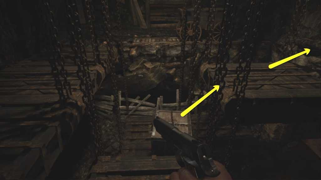 Теперь забираемся внутрь мельницы и идем по лестнице вниз, встаем на платформу и попадаем в шахту омерзительного чудища.