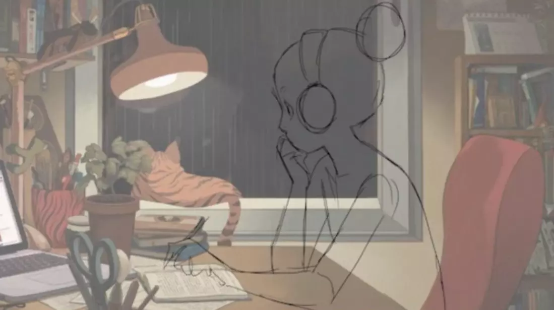 Это не единственный момент с учёбой в «Шёпоте сердца», но именно тут узнаётся образ классической Study Girl с lo-fi hip-hop стримов. Многие элементы из мультфильма можно увидеть на артах, иллюстрирующих трансляции — от наушников на голове до позы и кресла. Собственно, именно эти кадры из «Шёпота сердца» использовали на канале ChilledCow, но в 2017 году стрим тоже заблокировали. Тогда на смену «заимствованной» девушке пришла своя, ставшая культовой.