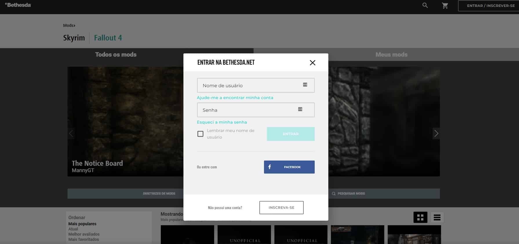 Шаг 2: Выберите опцию Mods в главном меню Fallout 4. Здесь вы должны войти в свою учетную запись Bethesda, используя то же имя пользователя и пароль.