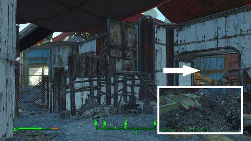 Второе — М240В – рядом с парковкой на выступе дома, забраться на который вы сможете, использовав ящики рядом с воротами. Рис.2