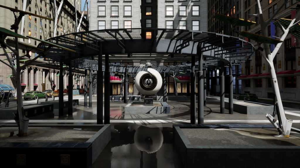 Мы много играли с перспективой, пряча направленные источники света за крупными элементами, чтобы создать тень. Мы также превысили размер мешей, чтобы увеличить перспективу кадров. Мы также использовали фичи Sequencer, чтобы спаунить целые части города, и двигать экспоненциальную высоту и направленный свет в таймлайне. Мы использовали много материалов пост-процесса и настроек LUT, чтобы достичь нужного визуального качества.