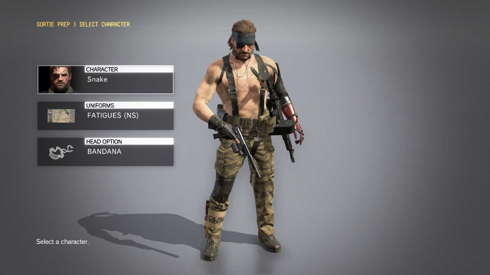 Помимо этого, Снейк может одеть бандану и банданити. Внешне они ничем не отличаются, но первая снижает вероятность получения критических ранений, а вторая даёт бесконечный боезапас. Первую можно разработать после прохождения 143-ей побочной миссии (400000 GMP); вторую после завершения 46-ой миссии ( 1000000 GMP).