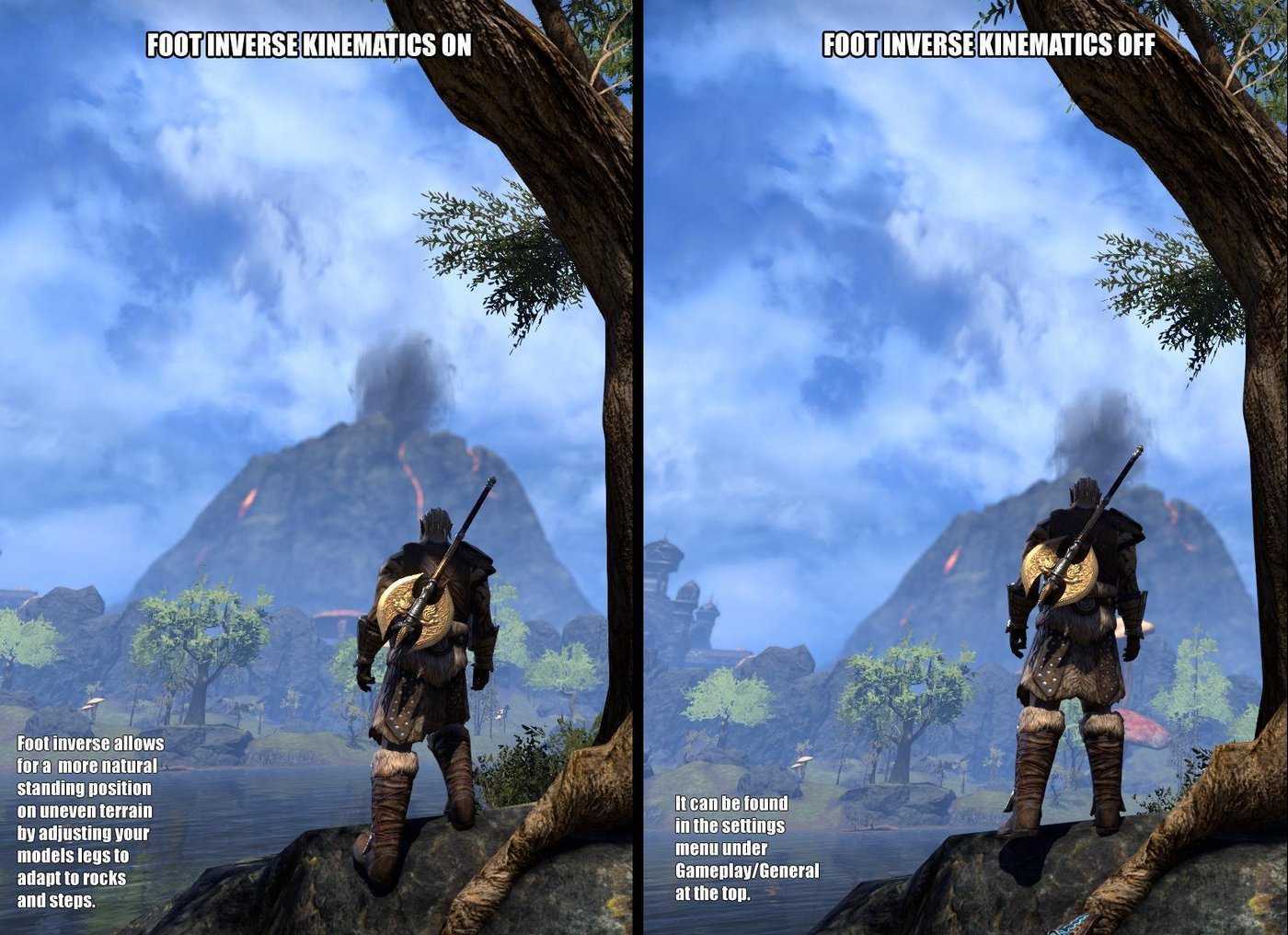 На картинке справа, левая нога висит в воздухе, словно персонаж стоит на плоской поверхности