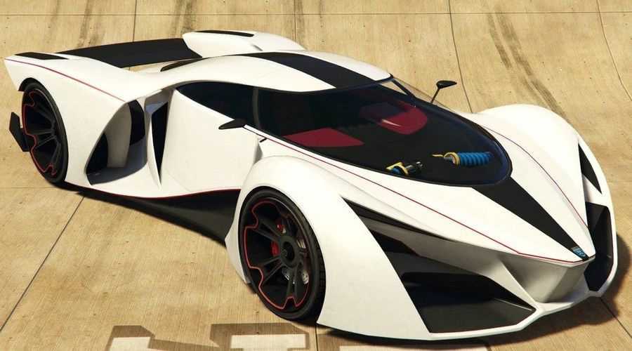 Еще один тип суперкара занимает четвертое место в списке самых быстрых автомобилей GTA 5. Deveste Eight — один из самых новых автомобилей в списке, выпущенный только в 2019 году в рамках обновления Arena War. Интересно, что этот суперкар основан на концепт-каре, известном как Devel Sixteen, из Дубая.