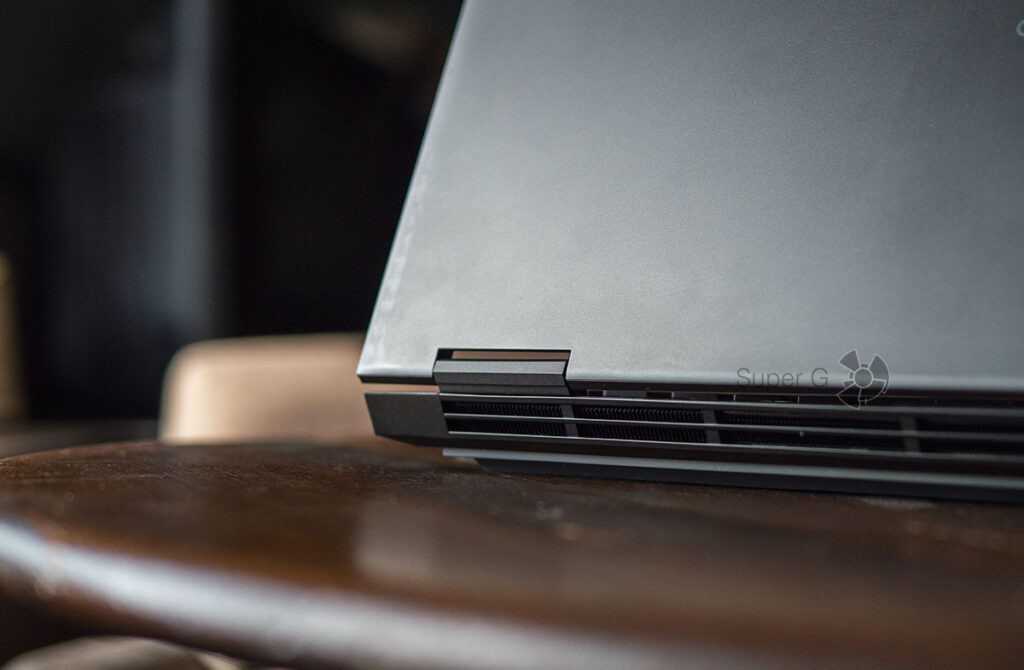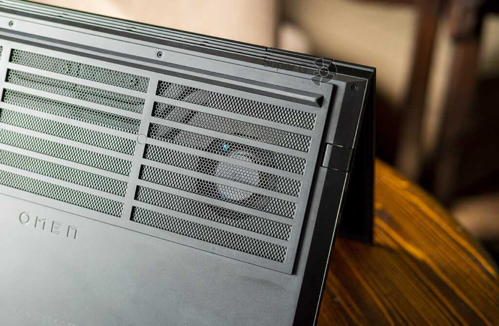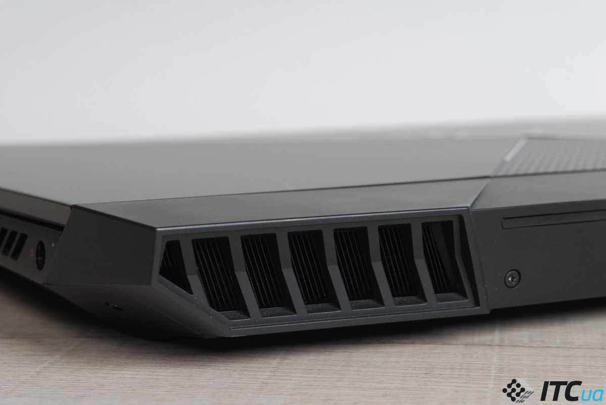 Уже по одному взгляду на HP Omen X можно предположить, что у ноутбука не должно быть проблем с охлаждением. У него довольно массивный корпус, а прорези системы охлаждения виднеются сразу на трёх гранях. Внутри ноутбука установлено два вентилятора, которые затягивают отверстия на боковых гранях, и выдувают на тыльную сторону. Таким образом, играть на ноутбуке будет комфортно как правше, так и левше.