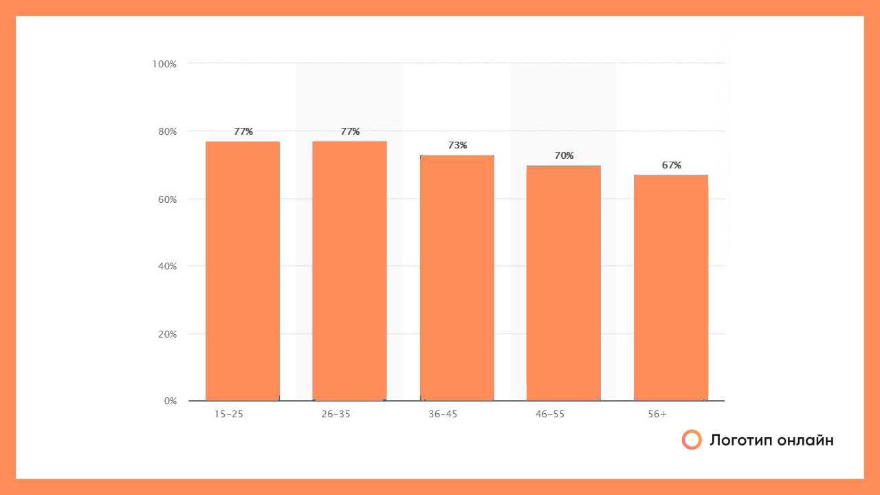 15 — 73% взрослых жителей США пользуются YouTube. 78% взрослых мужчин США и 68% взрослых женщин используют YouTube (Pew Research)