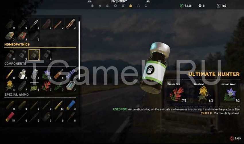 Крафт в Far Cry 5 позволяет создать зелье, которое поможет в охоте и обратит всех животных в бегство. Эликсир автоматически помечает всех живых существ, будь то люди или животные в поле зрения главного героя.