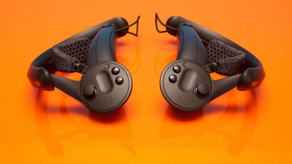 Прежде чем перейти к самой гарнитуре, мы должны поговорить о контроллерах. Valve годами тестирует их под кодовым названием «Knuckles», которое относится к их ключевой функции: отслеживанию движений пальцев. Они не похожи на геймпады Oculus Rift или HTC Vive: вместо того, чтобы держать их, вам нужно засунуть пальцы под ремень из микрофибры, который крепит контроллер к вашей руке.
