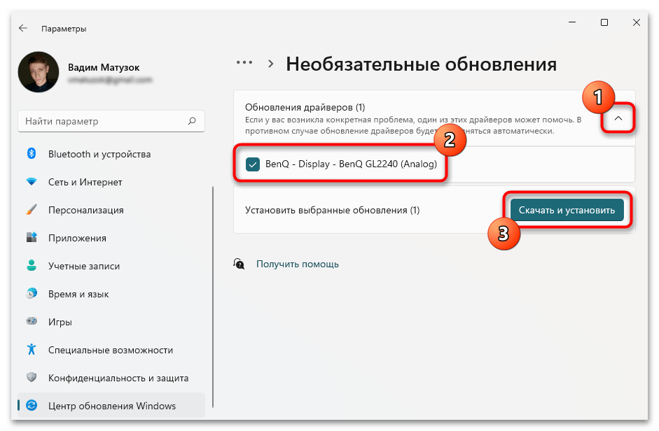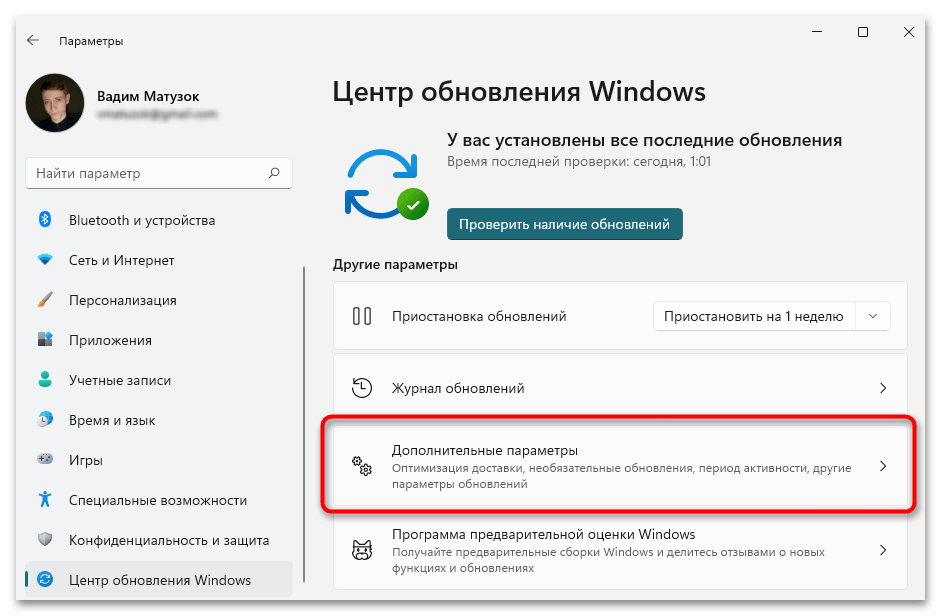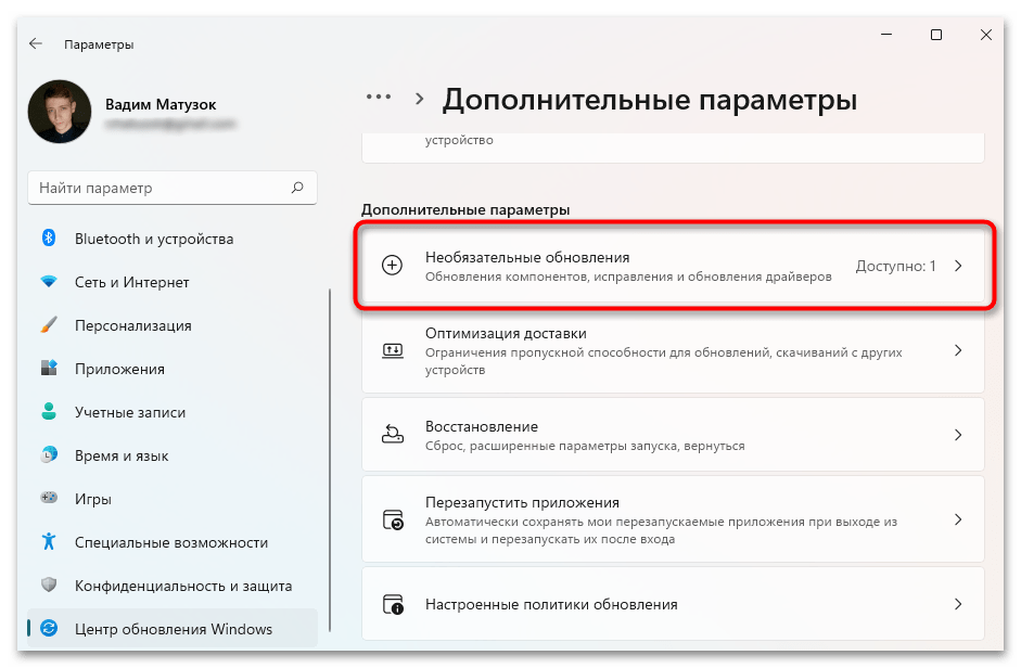 Спуститесь к блоку «Дополнительные параметры», перейдите в раздел «Необязательные обновления».