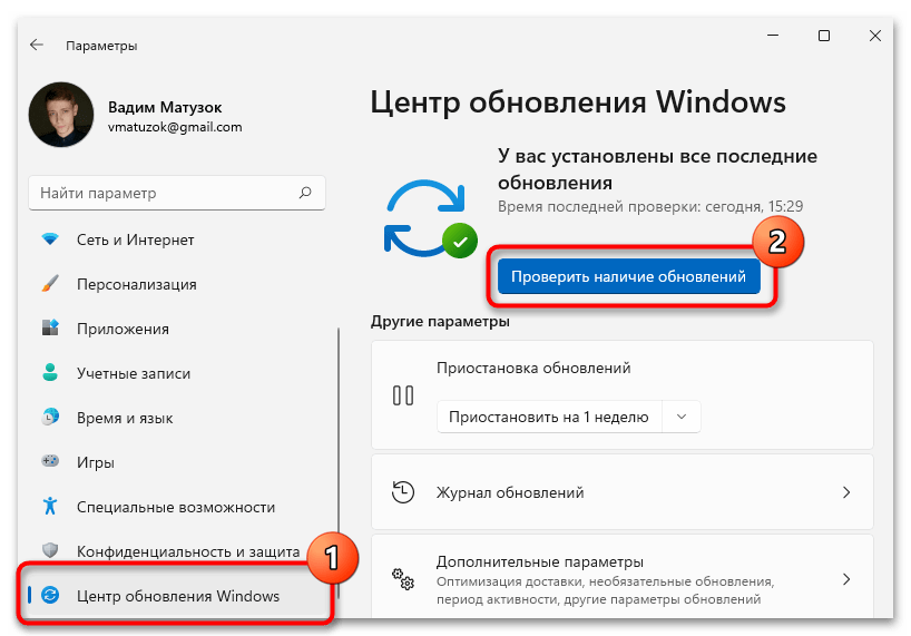 Воспользовавшись навигацией на боковой панели слева, перейдите в раздел «Центр обновления Windows». В основной части интерфейса кликните по кнопке «Проверить наличие обновлений».