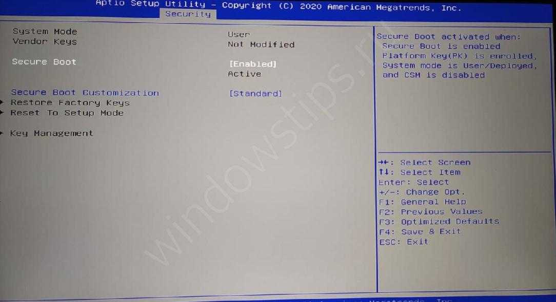 Нужно отметить, что для работы Secure Boot компьютер должен загружаться в режиме UEFI и использовать таблицу разделов GPT.