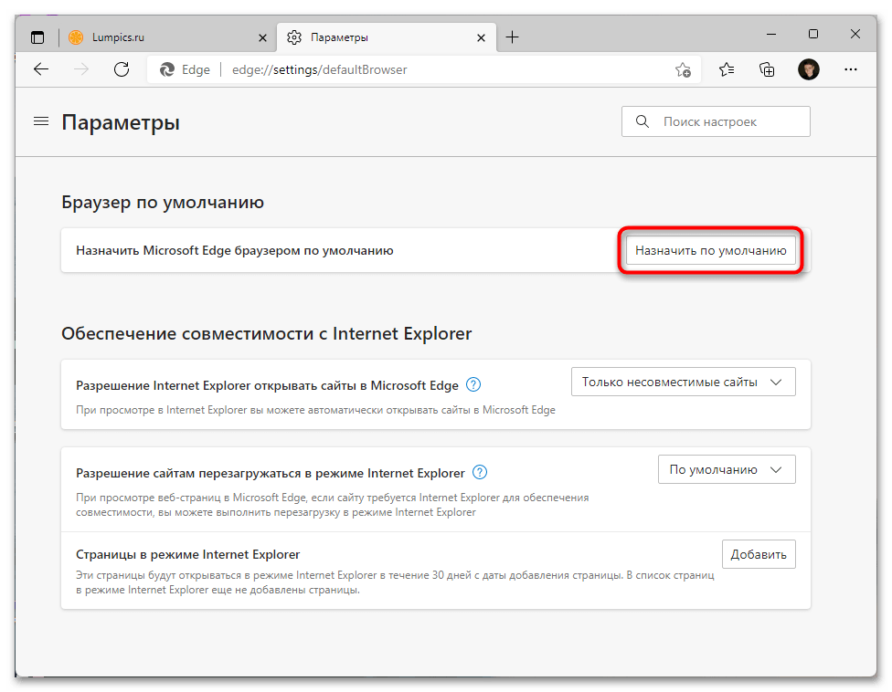 Способ 4: Установка Microsoft Edge в качестве браузера по умолчанию