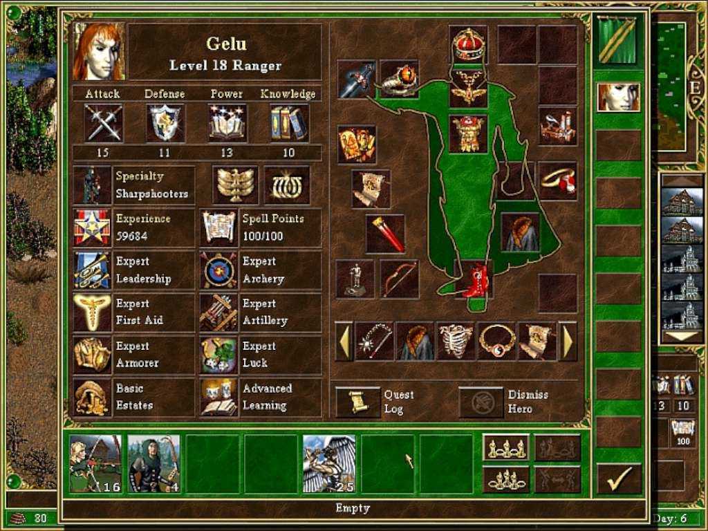 Геймер командует группами юнитов: ищет артефакты, сражается с противниками, развивает подчинённых, собирает ресурсы для поддержания боеспособности армии, управляет добытыми средствами в замке.