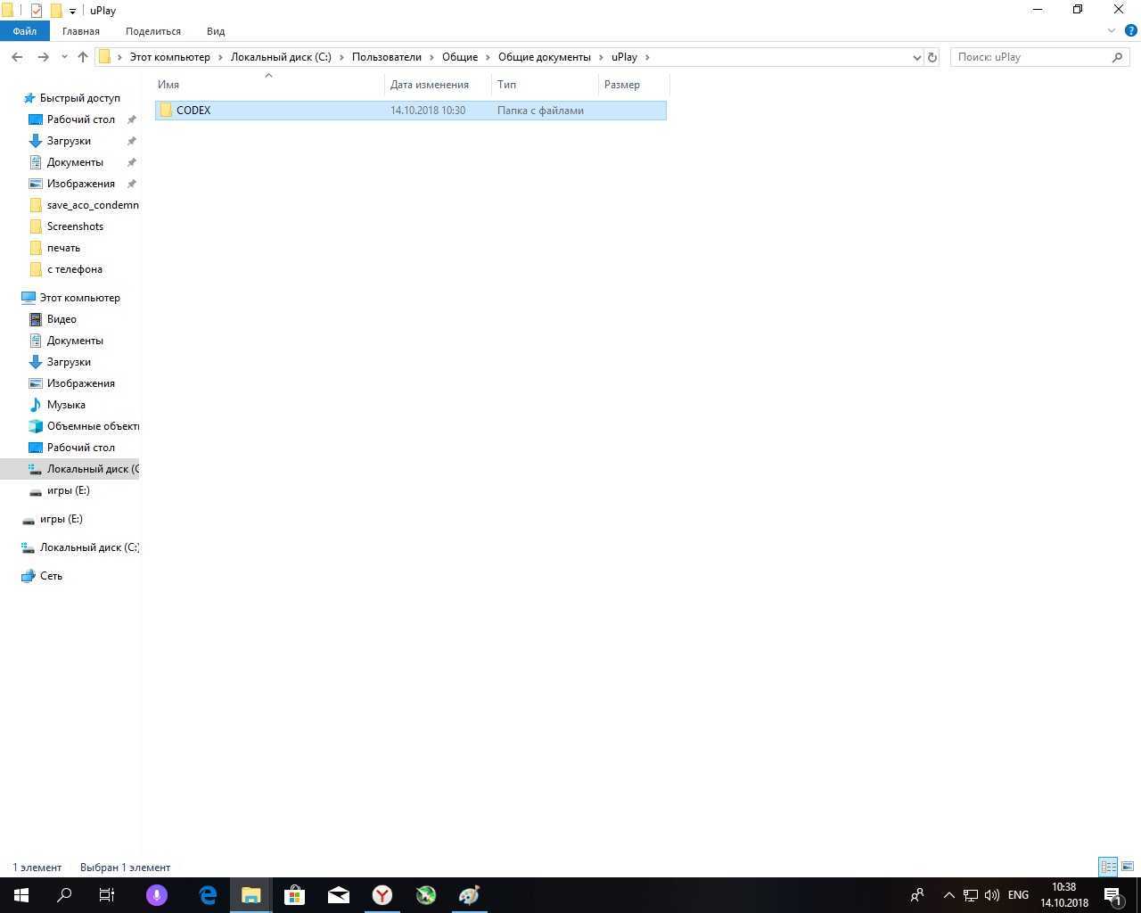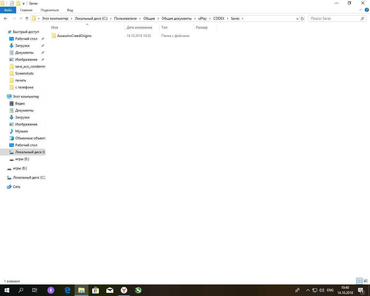 Заходим в папку с игрой F: Games WIN10 Assassins Creed Origins, в моём случае это такой путь, у вас же путь будет отличаться, но это не важно, заходим в папку и открываем файл CODEX.ini и в самом низу документа меняем строку ProfileName=CPY на ProfileName=Player, сохраняем изменения и закрываем. 4) Заходим в папку с новыми сохранениями C: Users Public Documents uPlay CODEX Saves AssassinsCreedOrigins, удаляем все 6 файлов из папки