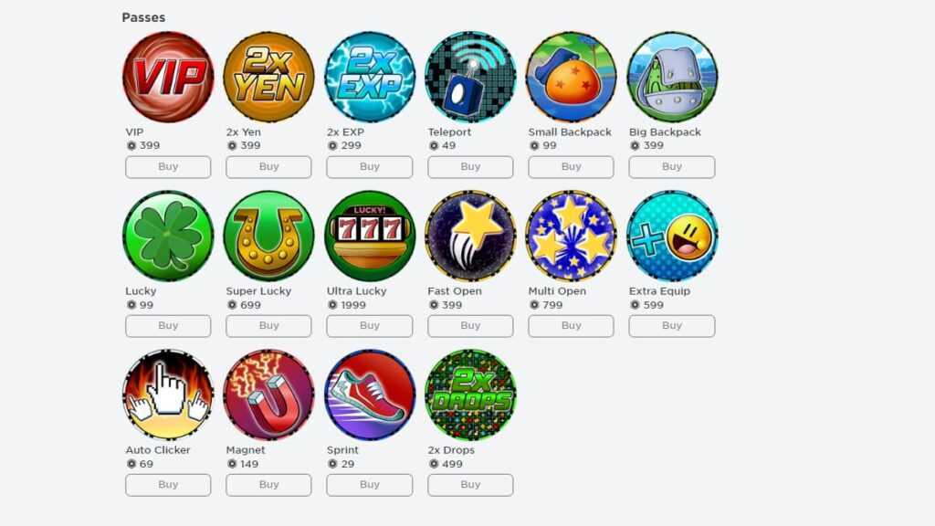 Passes are permanent boosts you can buy from the Anime Fighter Simulator store. These are purchased with Robux and will give you an endless buff to your character. It’ll increase things such as luck, backpack space, your EXP, and other cool things like being able to teleport! Below, we’ll list what each one does to help you in Anime Fighter Simulator.