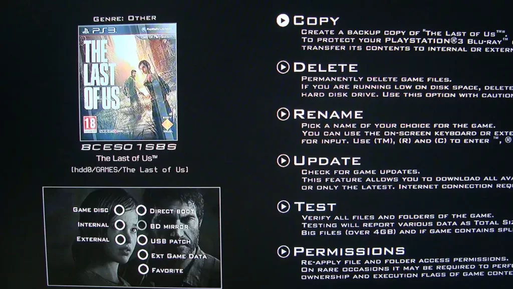 5. После этого открывается дерево папок и файлов доступных на консоли. Нас интересует местоположение трофеев игры. Возьмем к примеру игру The Last of Us (BCES01585) в свойствах Multiman.