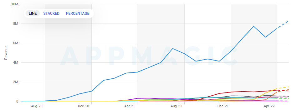 В топ-10 только три проекта, помимо Merge Mansion, зарабатывают более одного миллиона доллара в месяц. Именно столько они имеют после вычета доли сторов и налоговых отчислений.