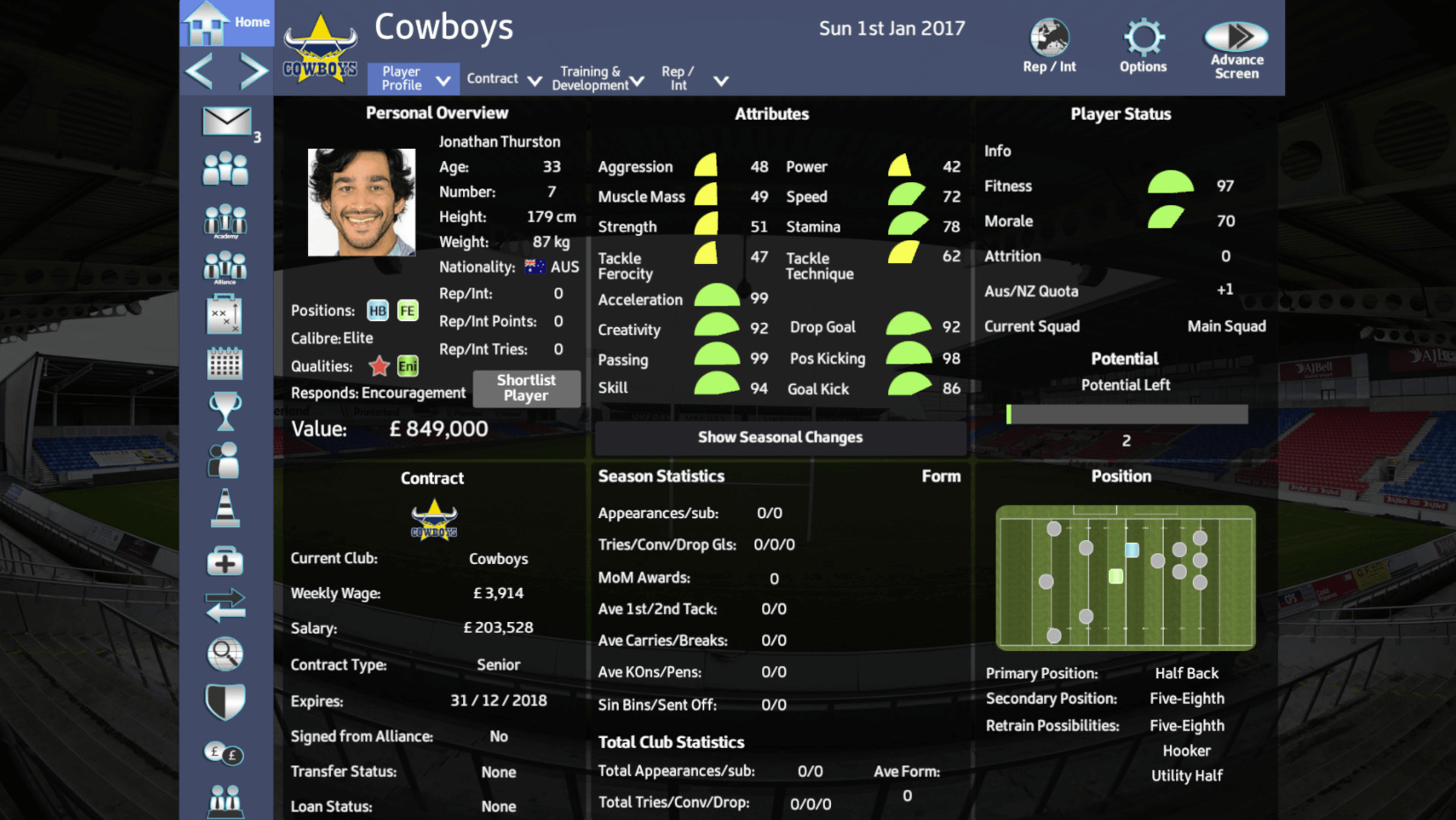 Rugby League Team Manager 2018 создан в том же формате, что и Football Manager и Out of the Park Baseball. В первую очередь это игра, основанная на статистике, в которой вы можете управлять своими любимыми командами из лиги регби со всего мира.