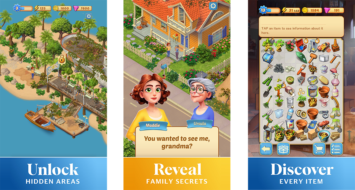 В Merge Mansion квесты задаются через окружение. Например, в локации героине мешает куст. Для его стрижки она должна в рамках кор-геймплея добыть секатор