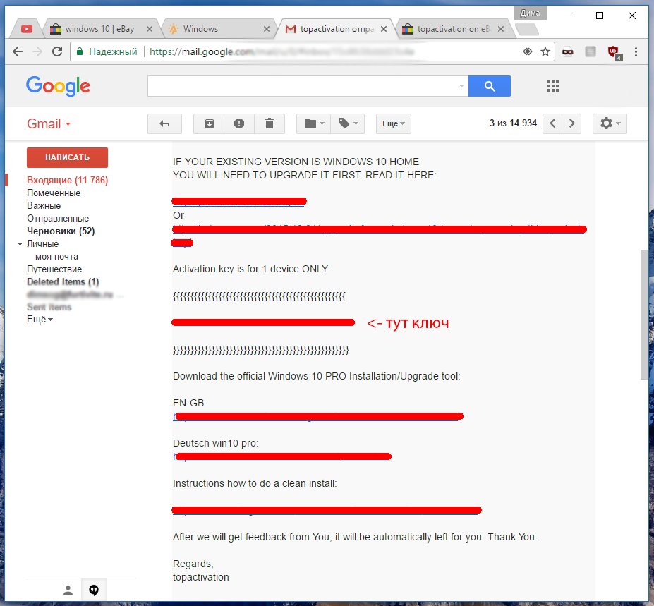 В 100% случаев, как я уже и говорил, на ebay продаются OEM ключи Windows 10, которые должны были поставляться с каким-то железом, но этими ключами Windows активируется спокойно.