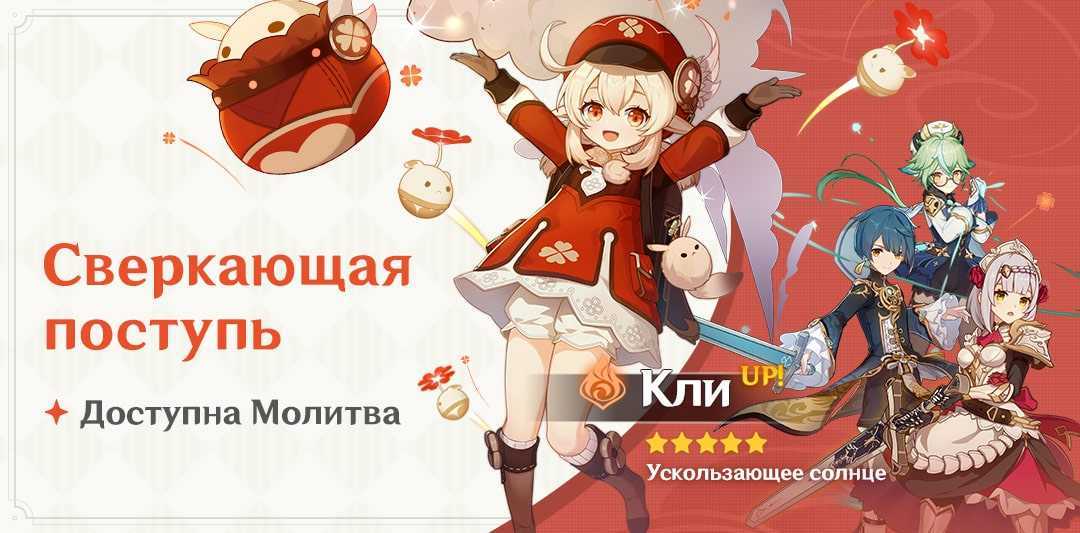 Кли (Пиро, катализатор) в молитве Сверкающая поступь. Эпические персонажи те же.