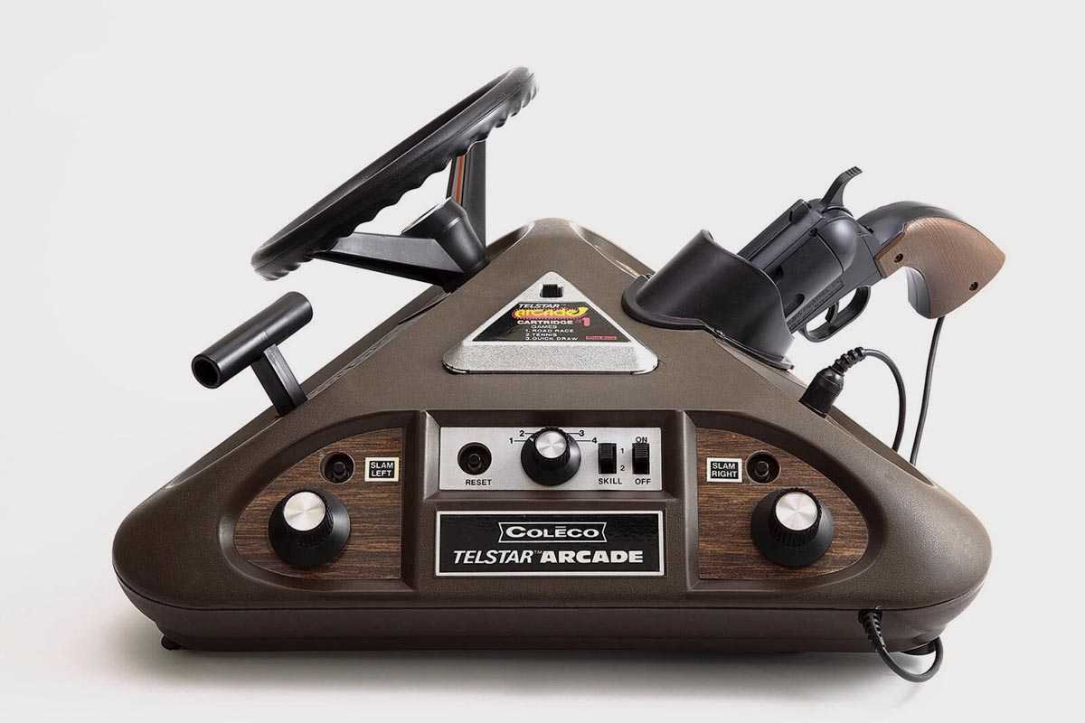 Одним из самых громоздких и странных игровых контроллеров стал блок управления одной из моделей приставки Coleco Telstar. Устройство было выполнено в форме трехгранной пирамиды. На одном торце располагался руль и кнопки управления для гоночных игр, на другом кобура для светового пистолета, а третья грань отводилась под манипулятор с парой кнопок и тремя поворотными регуляторами.