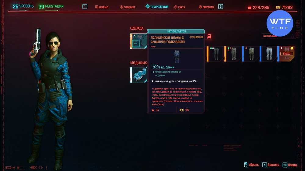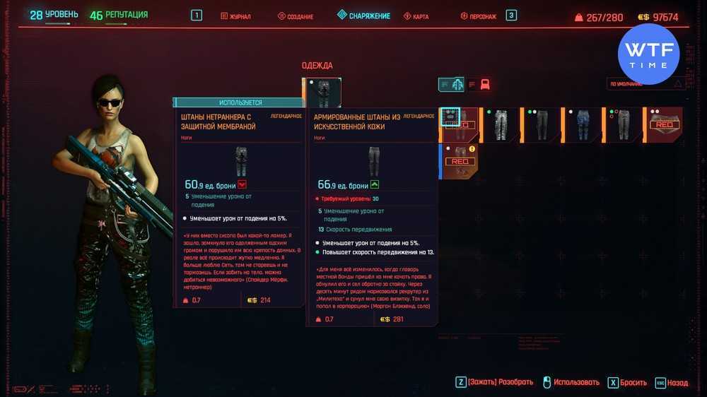 Что может быть лучше классной обуви? Кожаные штаны, конечно! Они также принадлежали легендарному Джонни Сильверхенду. Похоже, когда он умер, люди лишили его всего и просто разнесли по Найт-Сити. Пару этих штанов можно получить во время побочного квеста «Психофан».
