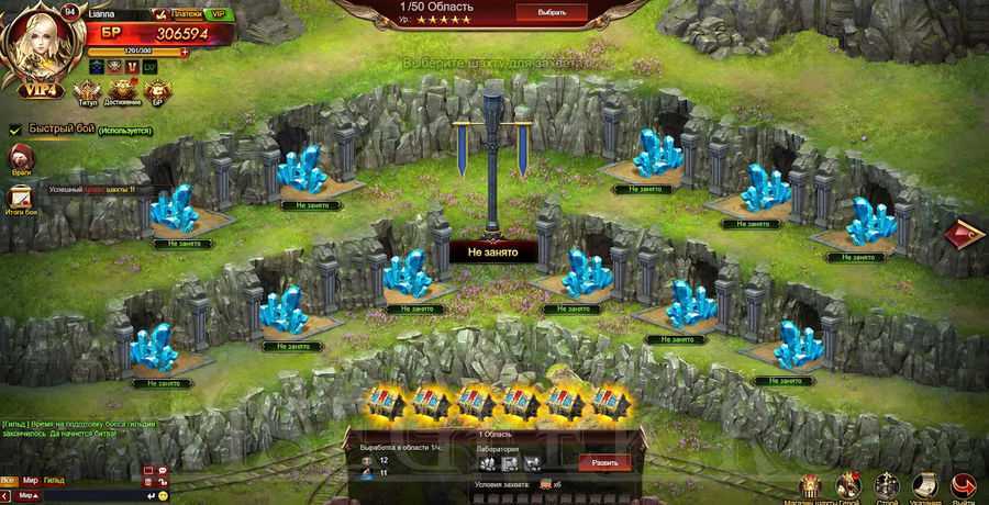 Война за ресурсы. Функционал открывается на 73-м уровне. Участвуя в войне за ресурсы, вы можете захватывать шахты и получать за них ценные ресурсы. Чтобы захватить шахту, вам нужно победить врагов, которые ее охраняют. Вы также можете отбивать шахты, захваченные другими игроками.