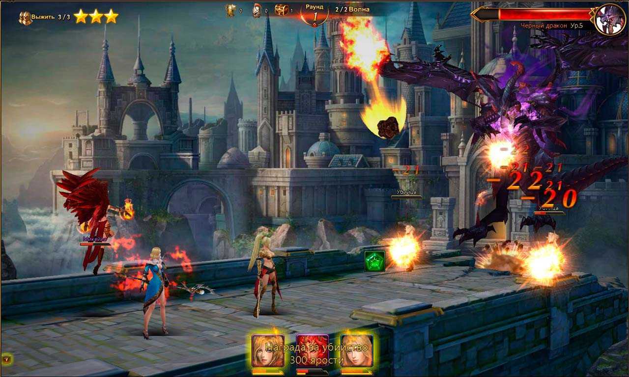 Большая часть игрового процесса в онлайн игре Лига Ангелов 3 будет завязана на прохождении квестов. Что будет отлично для фанатов PvE баталий, где походу дела вас будет закидывать в сюжетные данжи, то есть в подземелья с боссами. Где из самых крутых будут вывалиться части легендарного оружия, что по сюжету должно уничтожить владыку черных драконов. Всего вам предстоит выбить у боссов 12 артефактов, где большая часть из них не будет вами заполучена с первого раза. Касательно серверных рейдов, то они тут намного круче, чем у большинства других браузерок, даже 2018 года выпуска. Когда куча воинов дерётся с главным боссом подземелья, то это выглядит как общий хаб, и тот, кто круче по рейтингу получит гораздо ценнее награду. И вход ограниченный, вам порой придётся стоять в ожидании. И фармить вы будете очень жутко долго, так как прокачка требует немало особых ресурсов, но всегда можно задонатить.