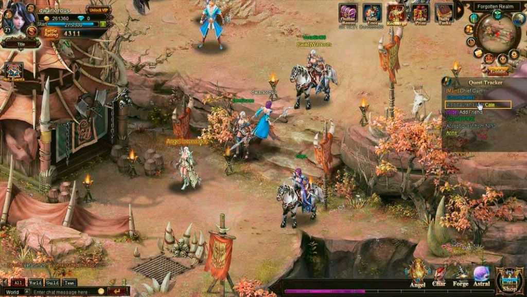 Тут на автобой не всё поставлено и в АФК режиме сутками играть не получится, как в большинстве обстоит дело в браузерных играх. В фентезийной онлайн игре Лига Ангелов 3 необходимо будет часто самостоятельно взаимодействовать с квестовыми персонажами NPC и делать выбор между вкачиванием на определённых локациях. Особенно это вам будет заметно на уровнях повыше за 100+, где бездумно у вас не получится одолеть боссов или опытных конкурентов по карте. Если коротко, то разработчики выполнили улучшение и в этом направлении.