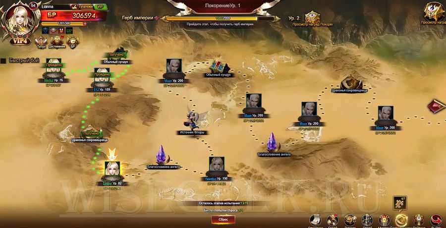 Покорение. Функционал открывается на 69 уровне. Это PvE-функционал, в котором вы можете получить реликвии, компоненты реликвий и ресурсы для их улучшения. Чтобы добраться до финальной награды, вам необходимо пройти все 30 этапов. Противники подбираются по вашим лучшим результатам.
