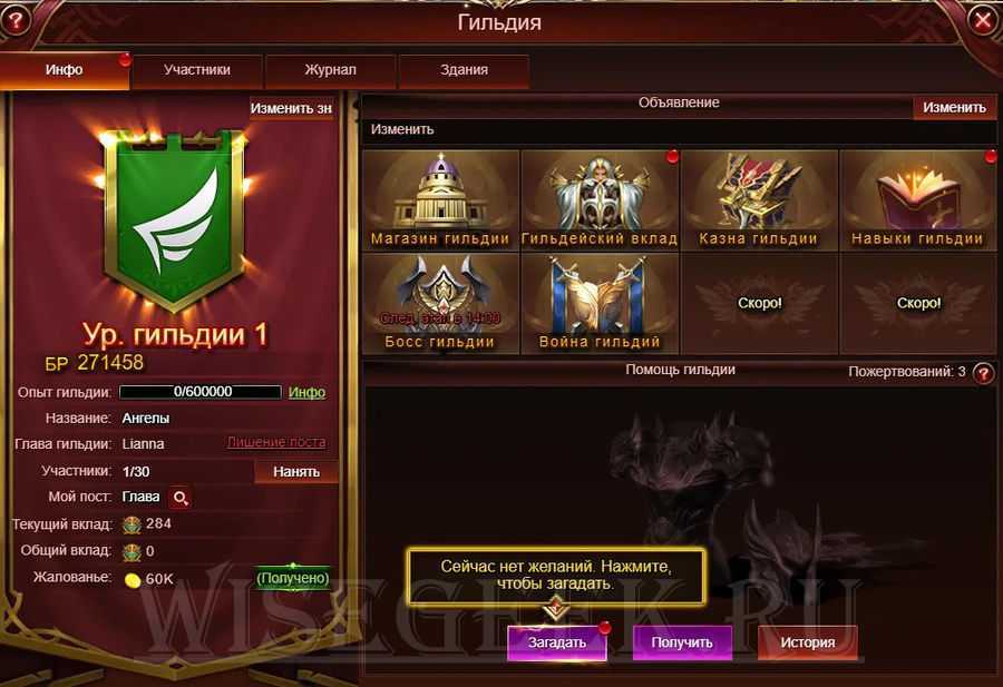 Гильдия. Функционал гильдий открывается на 31-м уровне