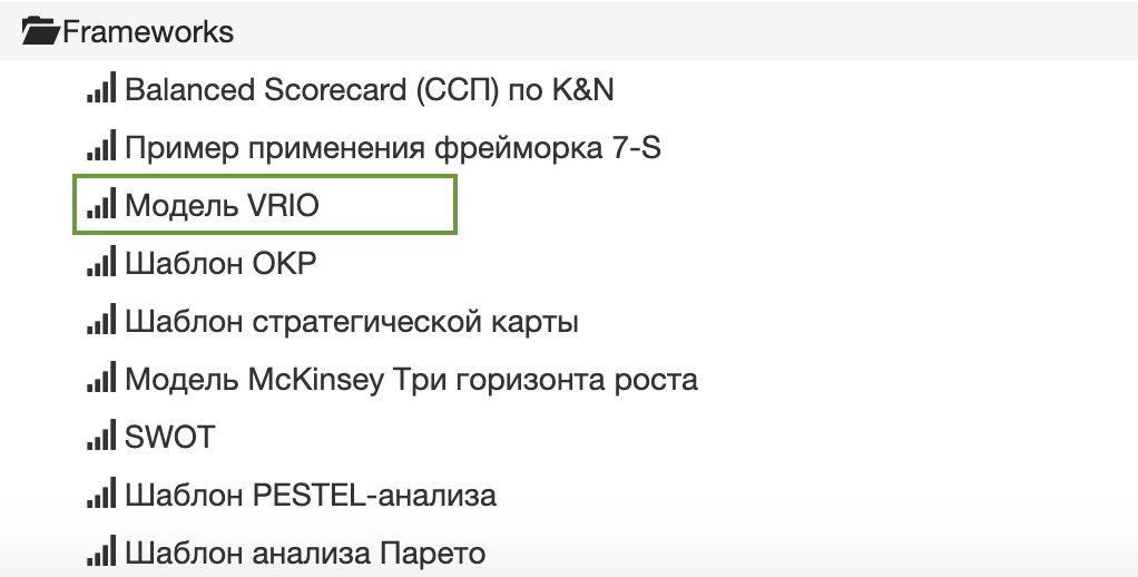Для экономии времени я начну с шаблона VRIO. Вы можете создать его следующим образом: Мои проекты > Создать > Новый проекты > Дополнительные шаблоны… > Frameworks).