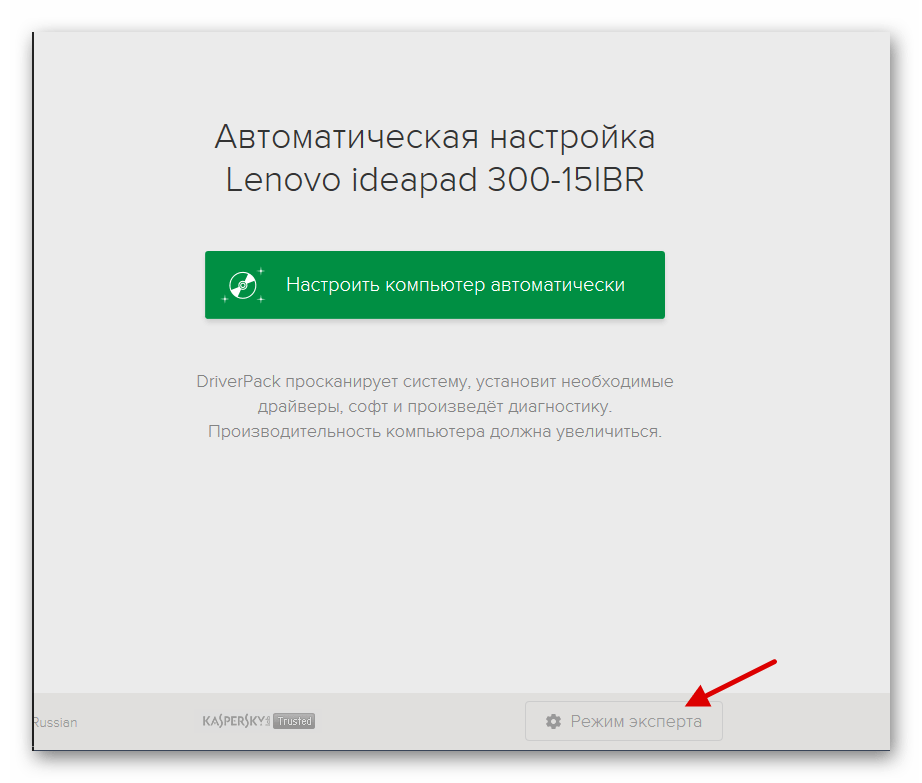 - Если вы не хотите загружать все драйвера подряд и рекомендуемые программы, нажмите «Режим эксперта».