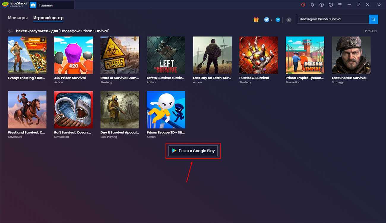 Чтобы играть в увлекательном survival проекте Hoosegow: Prison Survival на большом игровом поле, установите на ноутбуке, десктопе, планшете программу, имитатор Android-среды. Предлагаем воспользоваться утилитой Bluestacks 3, которая обеспечит Windows-систему гостевым полем с мобильным ПО.