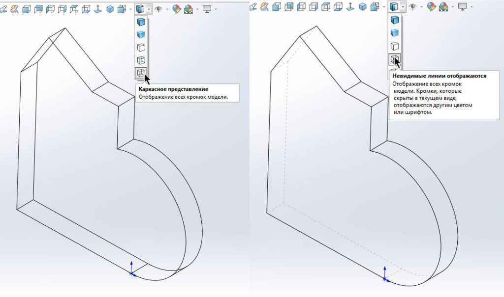 Каркасное отображение и отображение с невидимыми линиями в SolidWorks