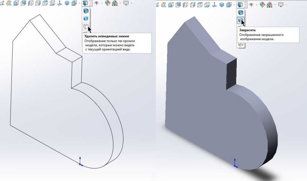 Отображение удалить невидимые линии и закрасить в SolidWorks