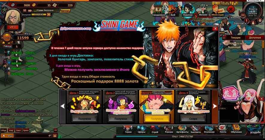 Новых персонажей из вселенной Блич вербуют гача-механикой двумя способами. Вы достаете их из шкатулки случайно или собираете из 30 фрагментов души, которые дают за квесты, продают в игровом магазине или жертвуют в гильдии.