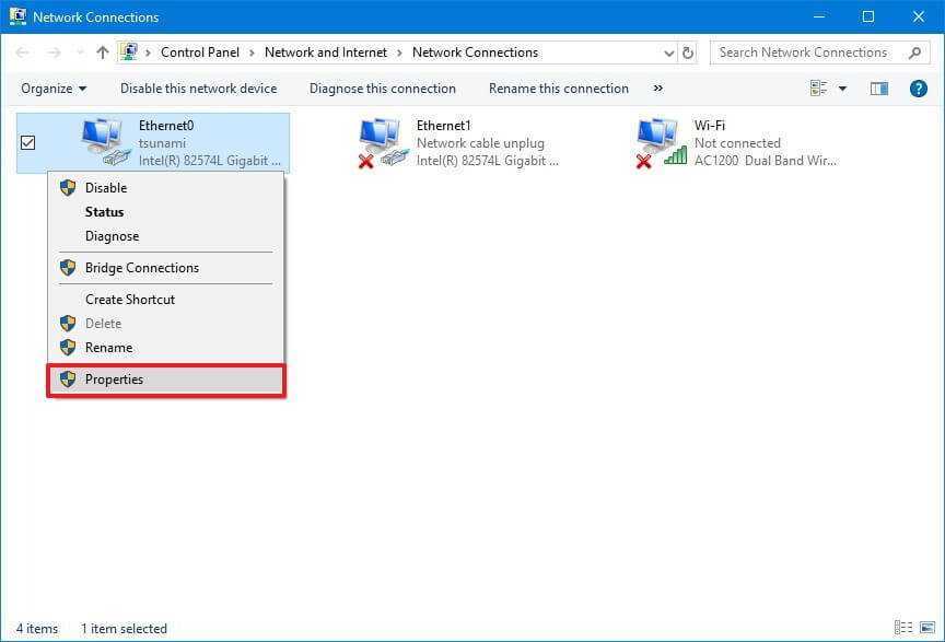 И щелкните правой кнопкой мыши на подключении, которое вы используете,> щелкните Свойства.