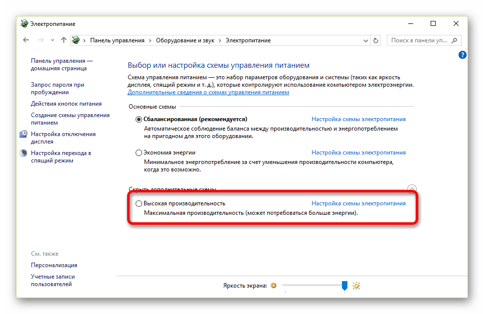 Установите переключатель в положение «Высокая производительность», после чего перезапустите компьютер, чтобы изменения немедленно вступили в силу.
